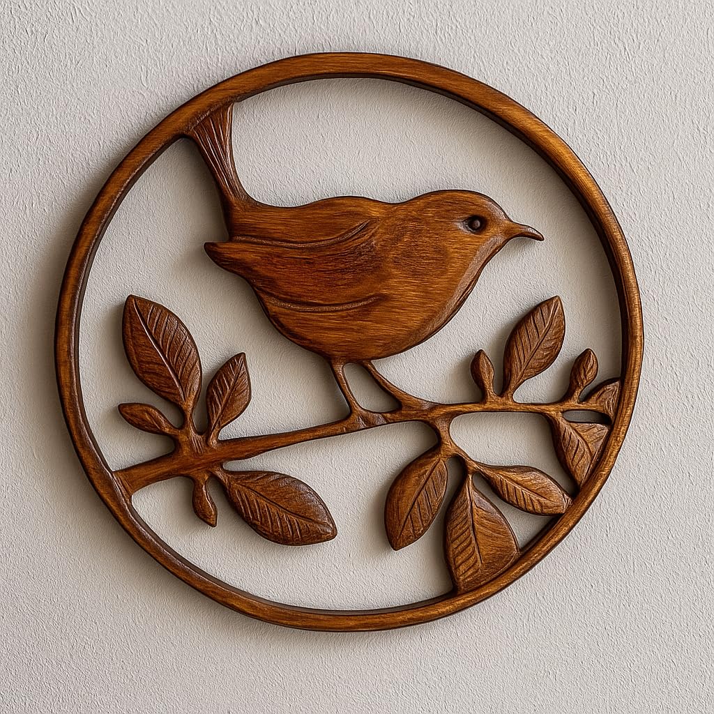 Bring a touch of nature and artistry into your home with this beautifully handcrafted wooden bird wall art. Expertly carved from high-quality wood, this round wall d?cor features a serene bird perched on a leafy branch, symbolizing peace, freedom, and the beauty of the natural world. The detailed craftsmanship and rich wood grain make it a perfect addition to any rustic, boho, or farmhouse-style interior. Whether displayed in your living room, bedroom, hallway, or entryway, this wall hanging adds warmth and charm to any space. The sturdy build and smooth finish ensure lasting quality and visual appeal. A perfect gift for bird lovers, nature enthusiasts, or anyone who appreciates handmade wooden art. The bird carved on wood is very beautiful and you can increase the beauty of your home by taking it on the wall of your room. The size of this itam is -40cm
