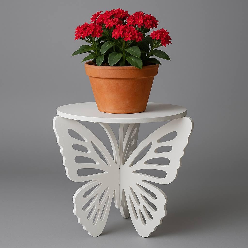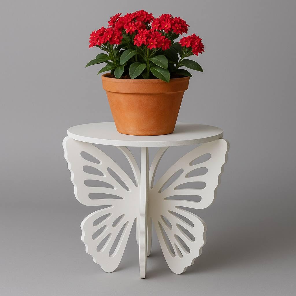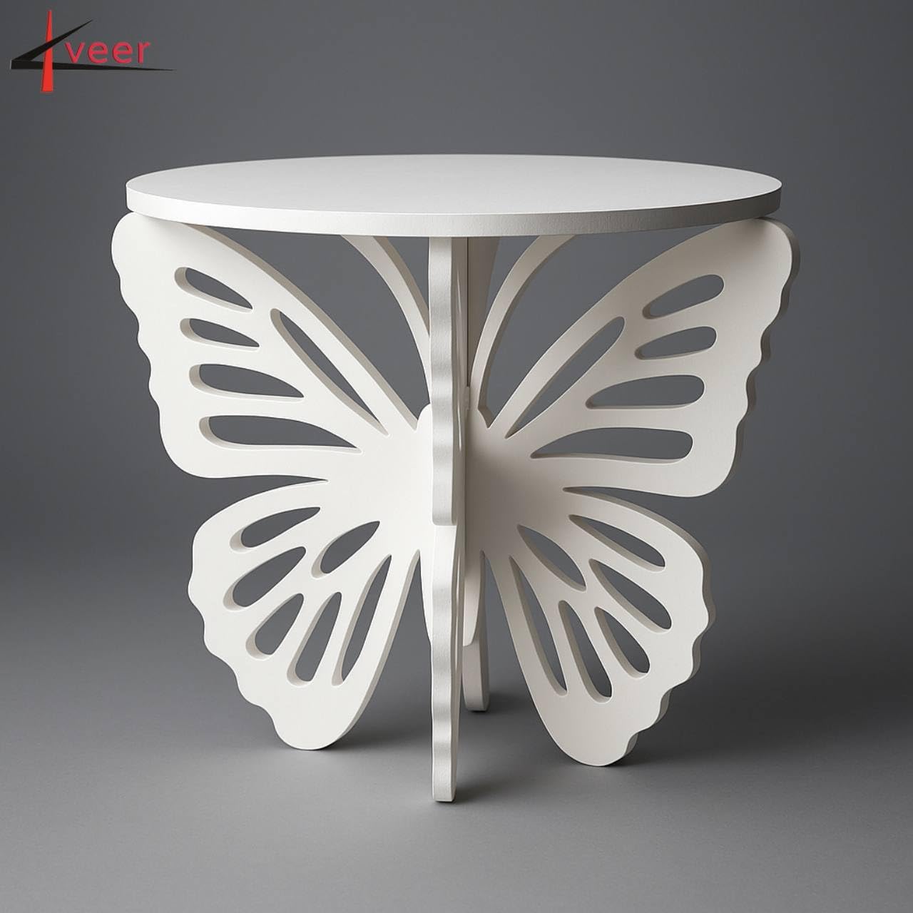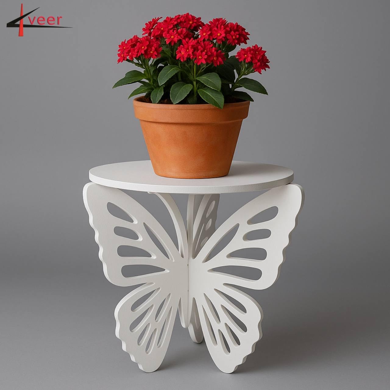 Add a Touch of Elegance with this Butterfly Design Wooden Table ? Bring charm and creativity into your space with this beautifully crafted butterfly-shaped wooden side table, made from high-quality MDF wood and finished in elegant white. Measuring 28x28x28 cm, this compact yet stylish piece is perfect for small spaces and versatile uses. Whether you use it as a plant stand, coffee corner table, bedside table, or decor stand, its unique butterfly cut-out design makes it a delightful addition to living rooms, bedrooms, balconies, offices, or kids' rooms. This lightweight yet sturdy table is easy to assemble and move, making it a practical and artistic choice for modern homes. Transform your living space with this stylish modern accent table that seamlessly blends form and function. Perfect as a side table in your living room, this contemporary piece offers a sleek surface for your everyday essentials, from beverages to books. Its versatile design complements various d?cor styles, making it an ideal addition to any room. The table's thoughtful proportions ensure it fits perfectly beside your sofa or armchair without overwhelming the space. Whether you're looking to add a decorative touch or create a practical surface for your daily needs, this side table delivers both aesthetic appeal and functionality. Its modern design elements make it a sophisticated choice for those seeking to enhance their home's interior with a touch of contemporary elegance.