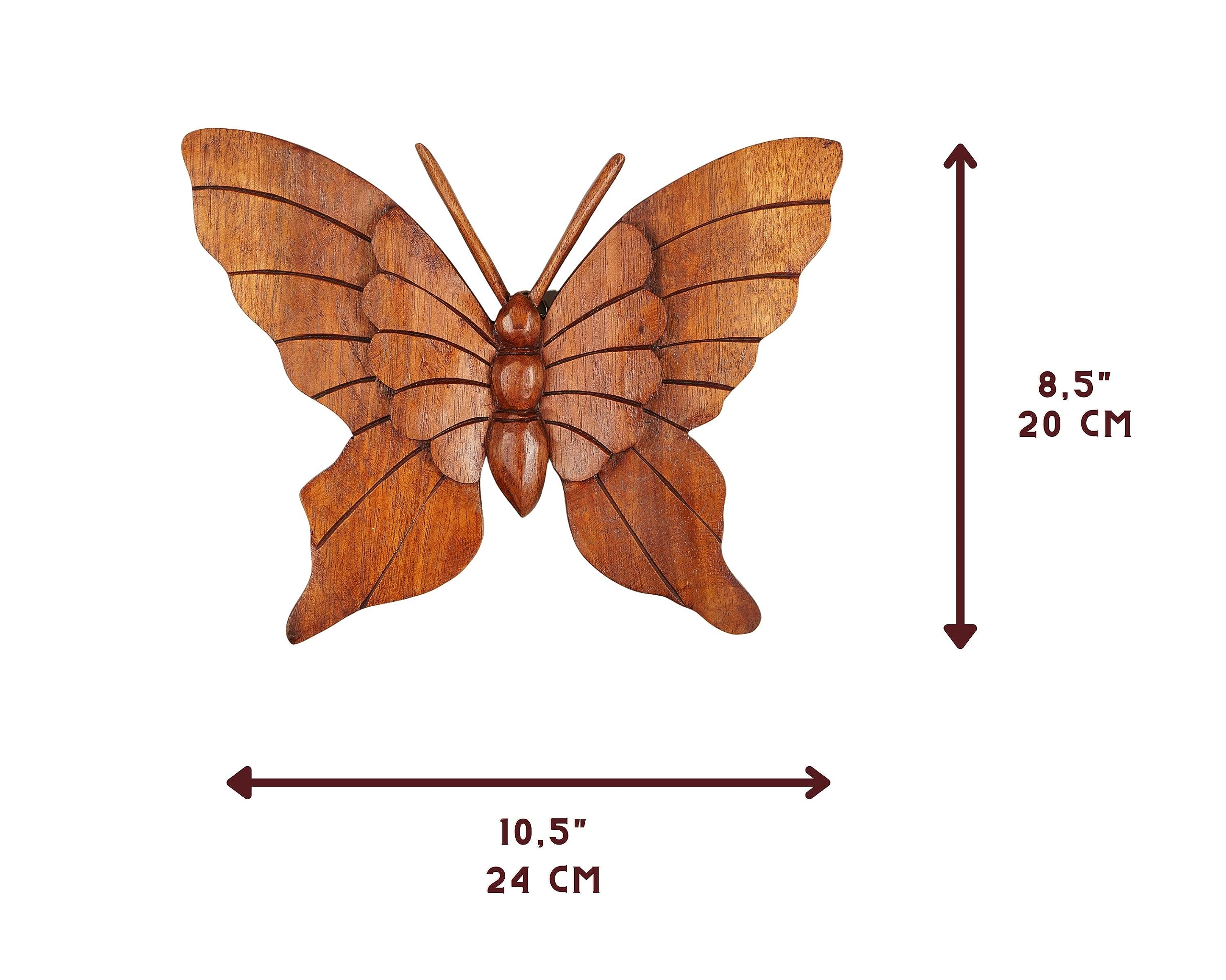 Bring the beauty of nature into your home with this stunning Handcrafted Wooden Butterfly Wall Decor. Meticulously carved from high-quality natural wood, this decorative piece features elegant detailing and a smooth, rustic finish that adds warmth and charm to any space. Perfect for those who love nature-inspired art, each butterfly is unique, showcasing the natural grain and texture of the wood. Ideal for indoor and outdoor use, this wooden butterfly sculpture makes a wonderful addition to your living room, bedroom, garden, porch, or office. Whether you're going for a boho, rustic, farmhouse, or natural theme, this wall hanging blends beautifully with any decor style. Looking for a thoughtful gift? This handmade butterfly is a meaningful and artistic present for birthdays, housewarmings, weddings, or Mother?s Day. Features: ? Handmade Craftsmanship ? Each piece is uniquely carved by skilled artisans ? Premium Natural Wood ? Durable and eco-friendly material with a smooth finish ? Rustic & Elegant Design ? Adds a touch of nature-inspired art to any space ? Versatile Decor ? Perfect for walls, patios, gardens, entryways, or indoor rooms ? Great Gift Idea ? Ideal for nature lovers, art collectors, or anyone who loves handcrafted decor